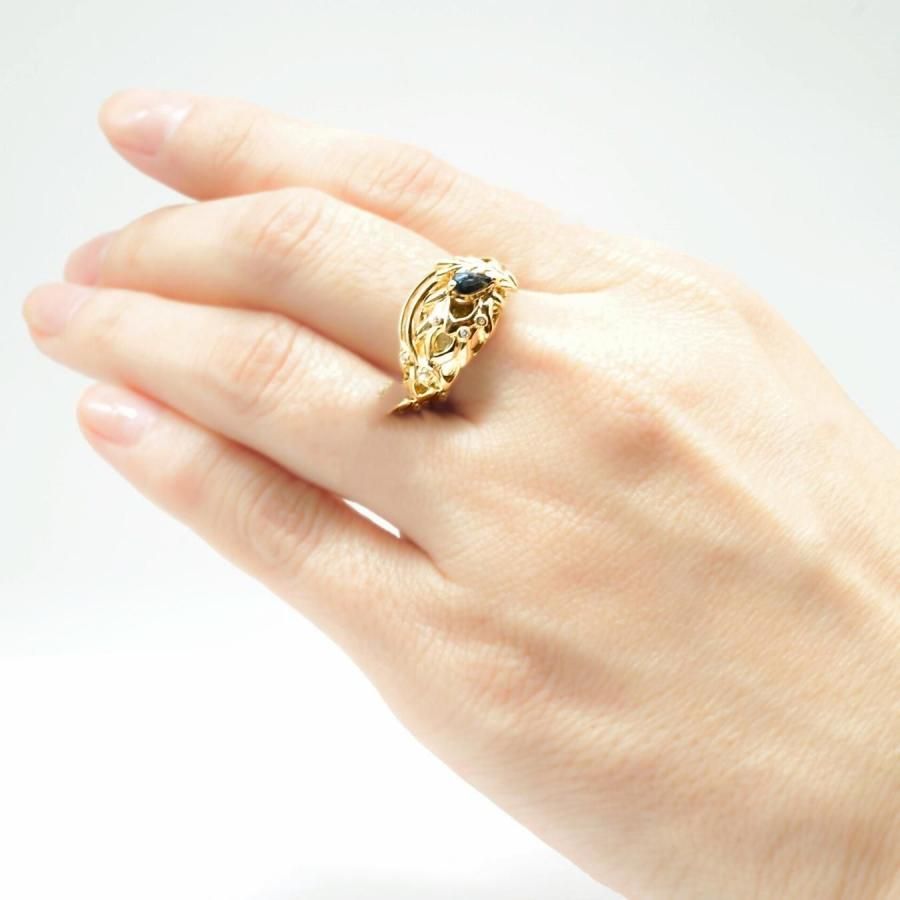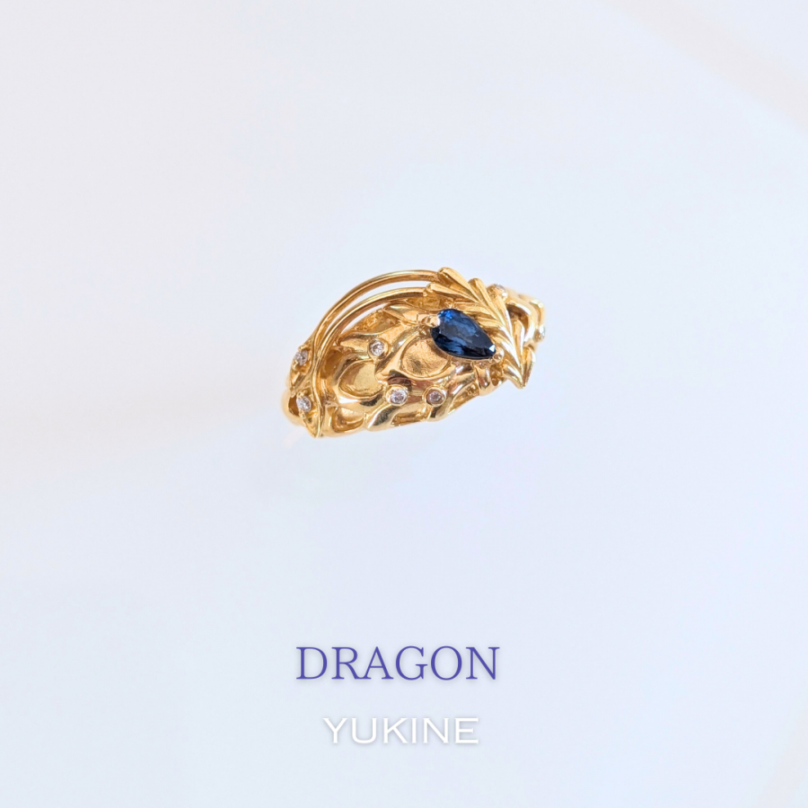 ドラゴンの瞳にはブルーサファイアを留めました。