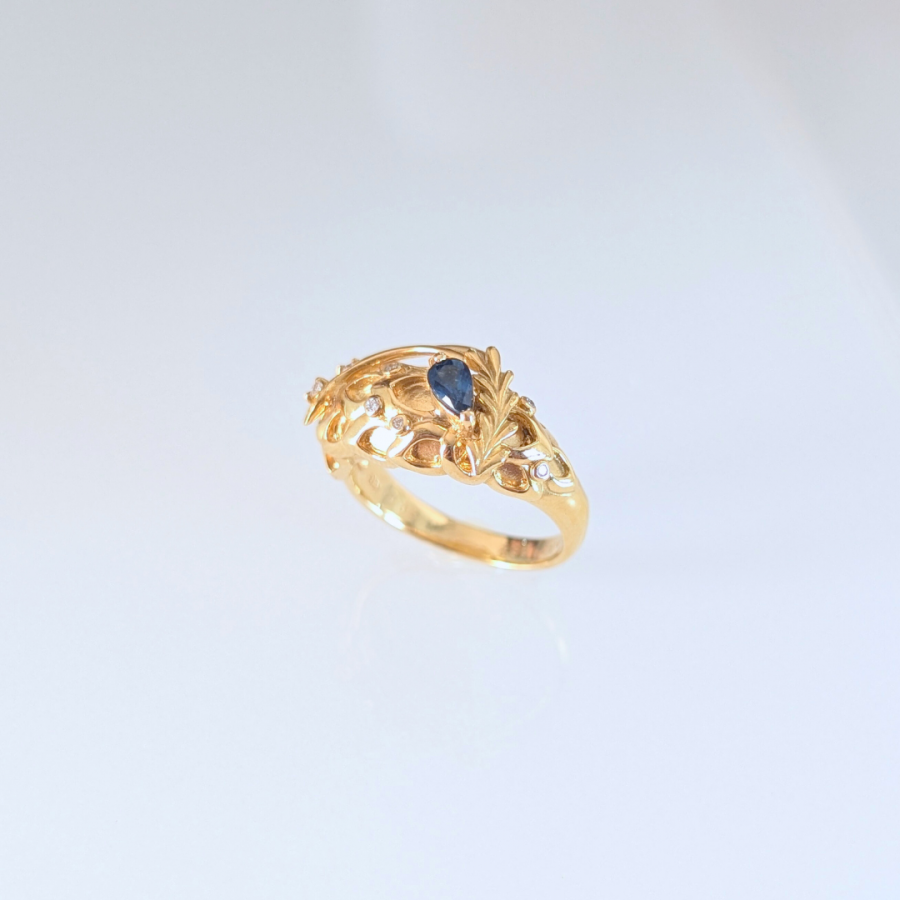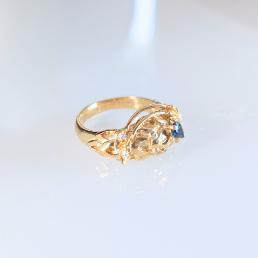 Material:ブルーサファイア、ダイヤモンド、K18YG,